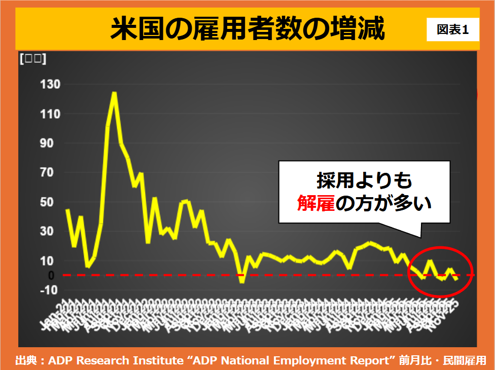 図表1にあるように、最近では米国の雇用数がマイナスになっています。