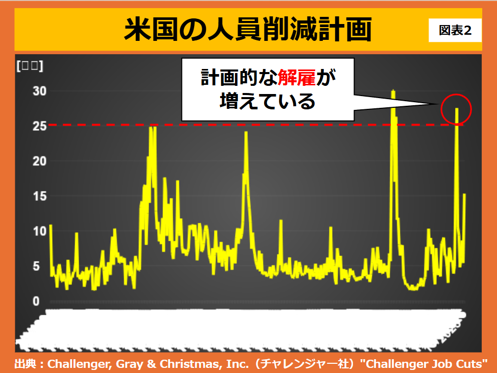 2020年のコロナ禍を除けば、2025年3月は過去30年で最も大きな規模の削減となっています。