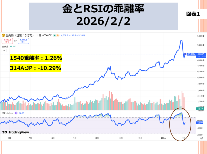 会員専用システム>ゴールド投資>最重要情報:価格・チャート>金とRSIの乖離率