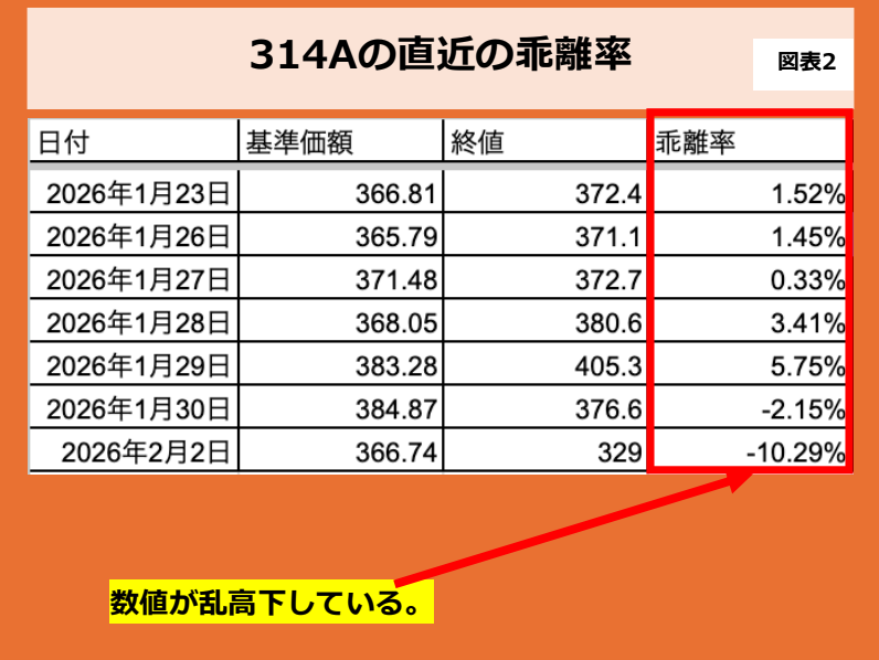 314Aの乖離率は大きく変化しています。 図表2をご覧ください。直近の乖離率の推移です。