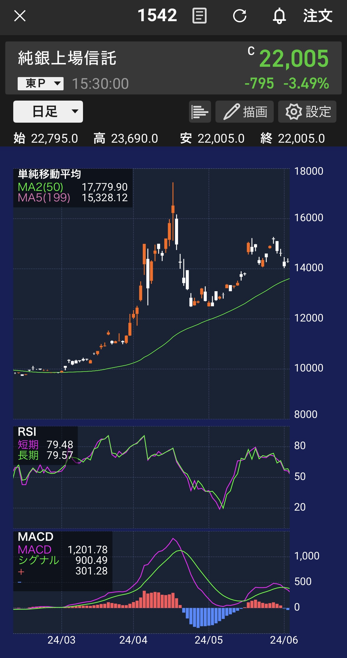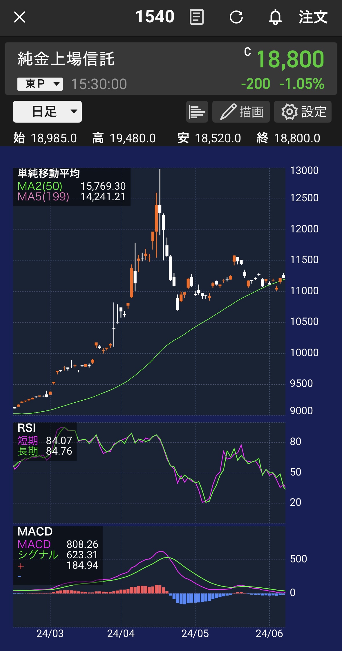 1540銘柄を買いあまりにも上昇するので、??下落すると大変!